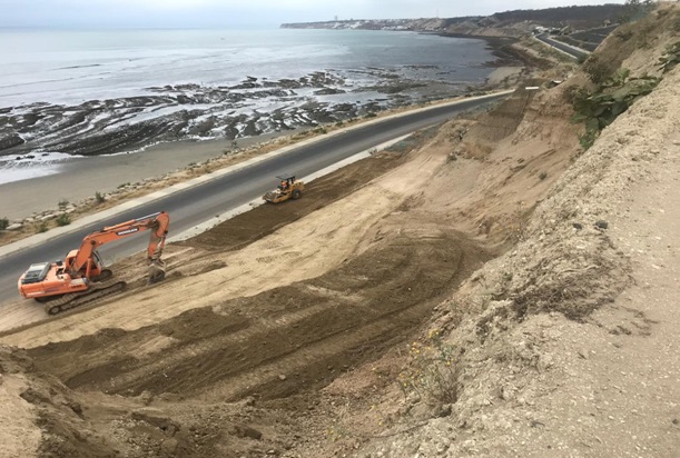 El Ministerio de Transporte y Obras Públicas (MTOP) trabaja en la parte alta del talud de acceso a la parroquia San Mateo, en la vía Manta – Puerto Cayo, que es parte del eje vial E15, a fin de garantizar la conectividad con otro ingreso alterno, entre el Puerto Pesquero de San Mateo y Manta.