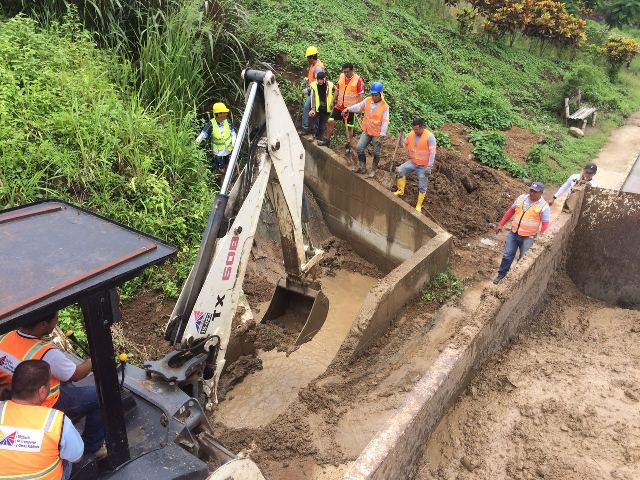 En la carretera Chone – Flavio Alfaro, sitio Pavón, el MTOP realiza limpieza de los escombros que ocasionaron la afectación de un ducto cajón, por lo que se trabaja en el desalojo de material. En el sitio Camarones de la misma vía, se colocó material fresado y se realiza limpieza de espaldón, cunetas y desalojo de escombros, para así evitar interrupciones.