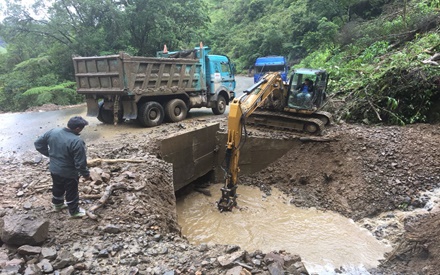 Desde tempranas horas de hoy, equipo caminero trabaja en la limpieza de quebradas y alcantarillas y adecúa los accesos en río Negro y río Selva. Se espera que el clima mejore para habilitar la circulación.