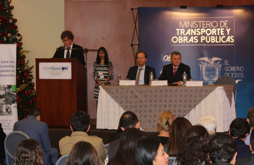 Conferencistas internacionales como Sylvie Banoun, coordinadora Interministerial para el desarrollo de la caminata y del ciclismo en el Ministerio de la Transición Ecológica y Solidaria Francesa; Thomas Jouannot, jefe de proyectos «modos activos» en el CEREMA, Francia (Centro de Estudios y Experiencia en Riesgos, Medio Ambiente, Movilidad y Desarrollo); y Marion Hoyez, encargada de proyectos y de cooperación para CODATU, ONG que actúa para una movilidad urbana sostenible en los países en desarrollo, expusieron la experiencia de sus países, para posteriormente aplicarla en Ecuador con el objetivo de aportar a la reducción de la huella de carbono y limitar el calentamiento global.