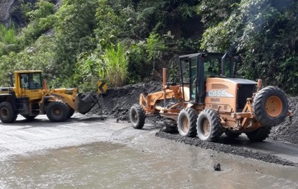 Maquinaria y personal obrero continúa labores de limpieza en la vía Limón Indanza.