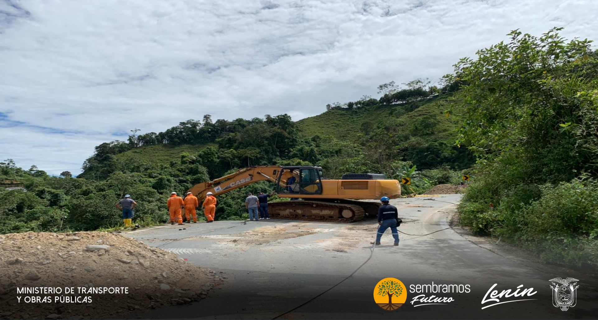 Para recuperar el talud que soporta la estructura de la vía, esta cartera de Estado movilizó personal operativo, técnico y equipo caminero conformado por una excavadora, cargadora frontal y dos volquetes.