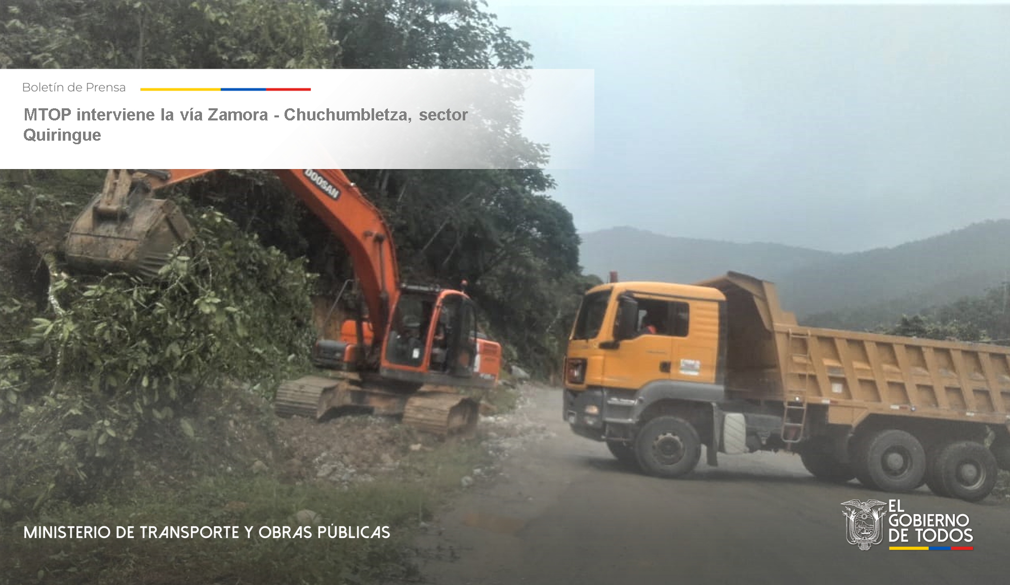 MTOP interviene la vía Zamora – Chuchumbletza, sector Quiringue