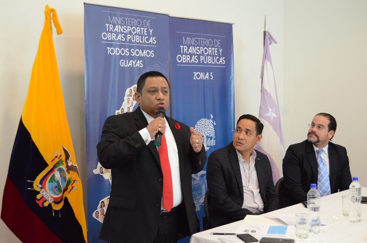 Andrés Delgado, director Distrital de Guayas, junto a autoridades del MTOP y CTE.