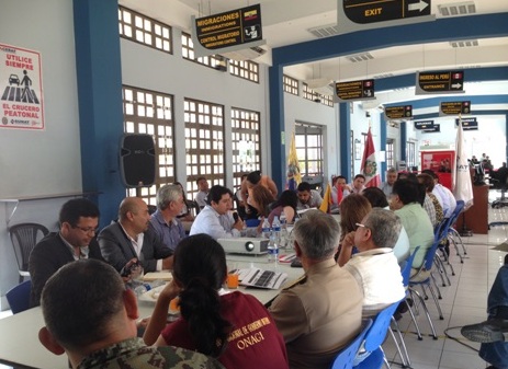 El pasado miércoles 10 de junio, Israel Villavicencio, subsecretario Regional 7 del Ministerio de Transporte y Obras Públicas (MTOP), asistió a la reunión binacional Ecuador – Perú, realizada en el Centro Binacional de Atención Fronteriza (CEBAF) de Huaquillas, con el propósito de evaluar la propuesta del nuevo módulo de atención integrado y reestructuración del CEBAF, con lo cual se optimizarán los servicios para el tránsito de personas y traslado de productos desde Ecuador a Perú y viceversa.
