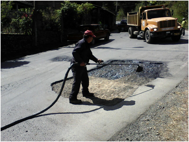 El lunes 29 de junio se inició los trabajos de bacheo de la calzada, en la vía Piñas-Portovelo, que ha sido afectada por el fuerte temporal invernal por el que atraviesa la región sur del país.