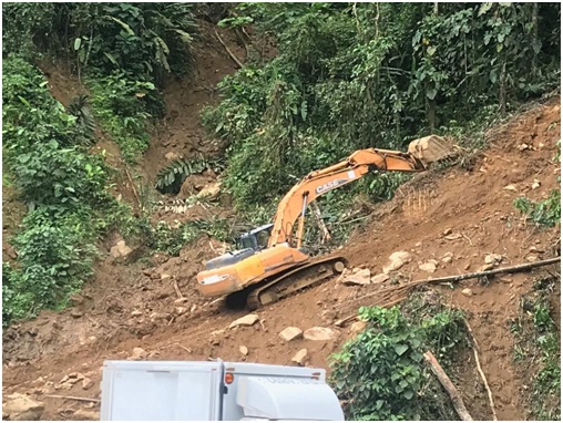 Finalmente en la carretera Portovelo – Salatí – Ambocas se interviene en los puntos críticos y desalojo de material de la calzada para facilitar la movilidad de los usuarios de la parte baja y alta de la provincia bananera.