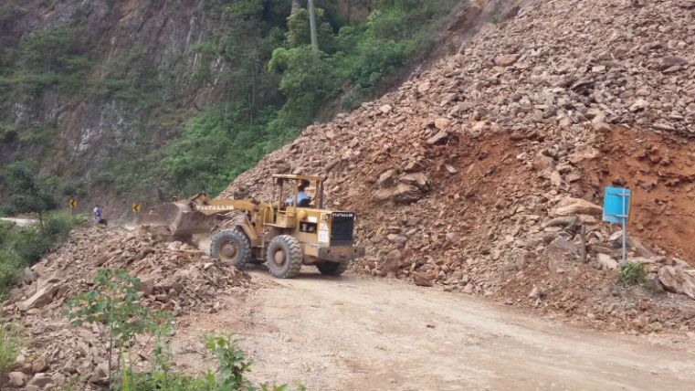 Destacó que en la actualidad en el lugar del deslizamiento se cuenta con 1 cargadora, 2 volquetas, 5 trabajadores, 2 técnicos y la patrullas de caminos, todos laboran para que la vía quede expedita al transito vehicular.