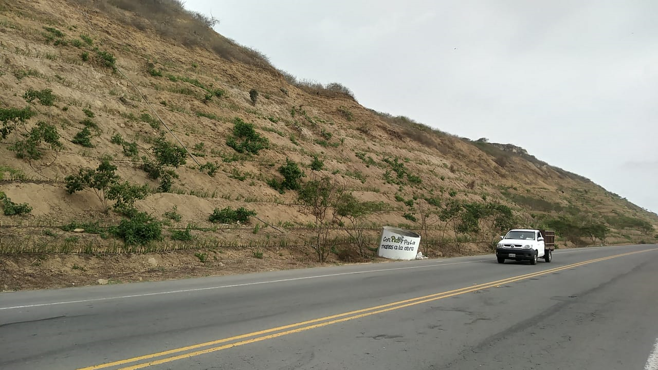 Las tareas iniciaron en agosto del año pasado, con la topografía y reconformación de taludes, nivelación y construcción de surcos, para posteriormente sembrar 32.121 plantas en tres kilómetros de víaa que conecta las provincias de Santa Elena y Manabí.