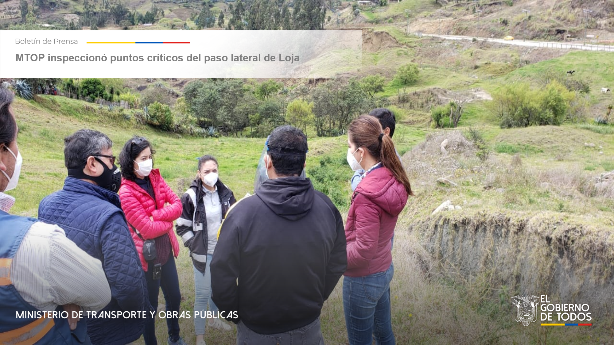 Con el objetivo de verificar las propuestas planteadas por el equipo consultor encargado de los estudios para dar solución a los cinco puntos críticos del paso lateral de Loja, ayer 22 de septiembre de 2020, se realizó una inspección conjunta con técnicos de la Subsecretaria Zonal 7 del Ministerio de Transporte y Obras Públicas (MTOP), así lo afirmó el subsecretario Fredy Altamirano Arias.