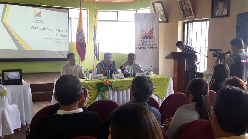 Morona Santiago.- con la presencia de transportistas, representantes de las comunidades aledañas a las zonas de influencia del proyecto, y autoridades de Limón Indanza, esta mañana se socializó las obras que el Ministerio de Transporte y Obras Públicas (MTOP) ejecuta en la vía Gualaceo – Plan de Milagro.
