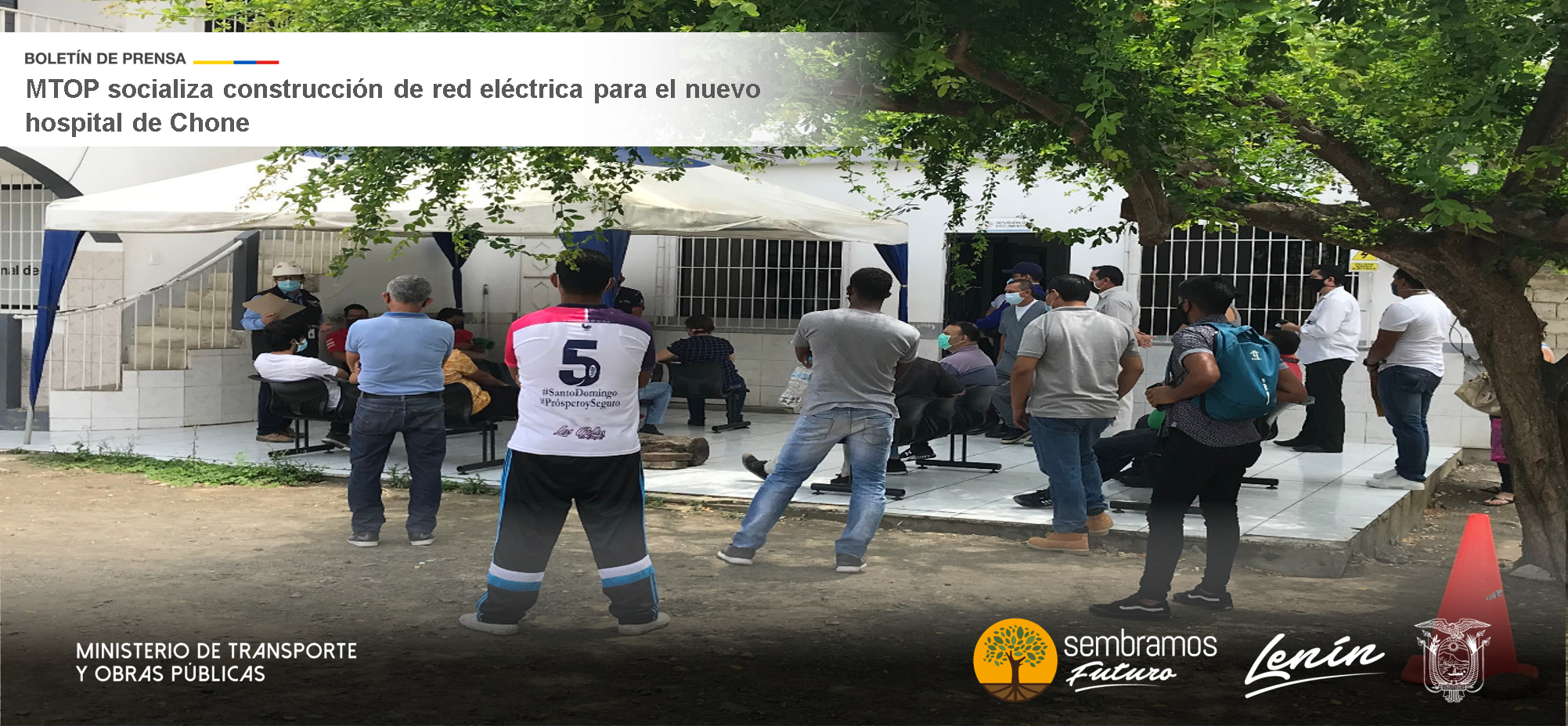 La construcción del hospital “Napoleón Dávila”, en el cantón Chone, continúa. Como parte de este proceso que impulsa el Ministerio de Transporte y Obras Públicas (MTOP) se socializó con los moradores del área de influencia, la implementación de una red de medio voltaje de 13.8 Kv, que dotará de energía exclusiva a la nueva casa de salud.