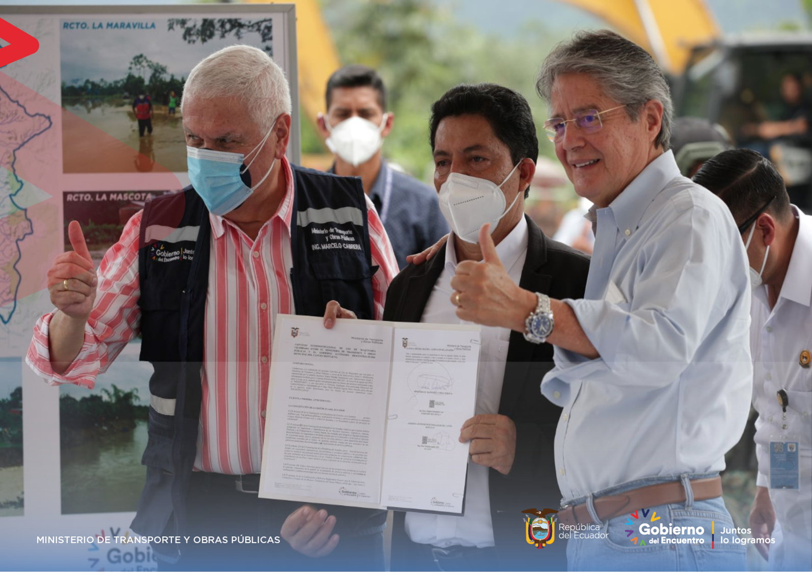 El ministro de Transporte y Obras Públicas, Marcelo Cabrera y el alcalde de Montalvo, Óscar Aguilar suscribieron hoy, 18 de febrero de 2022, un convenio de uso de maquinaria para trabajar en obras conjuntas de mitigación invernal.