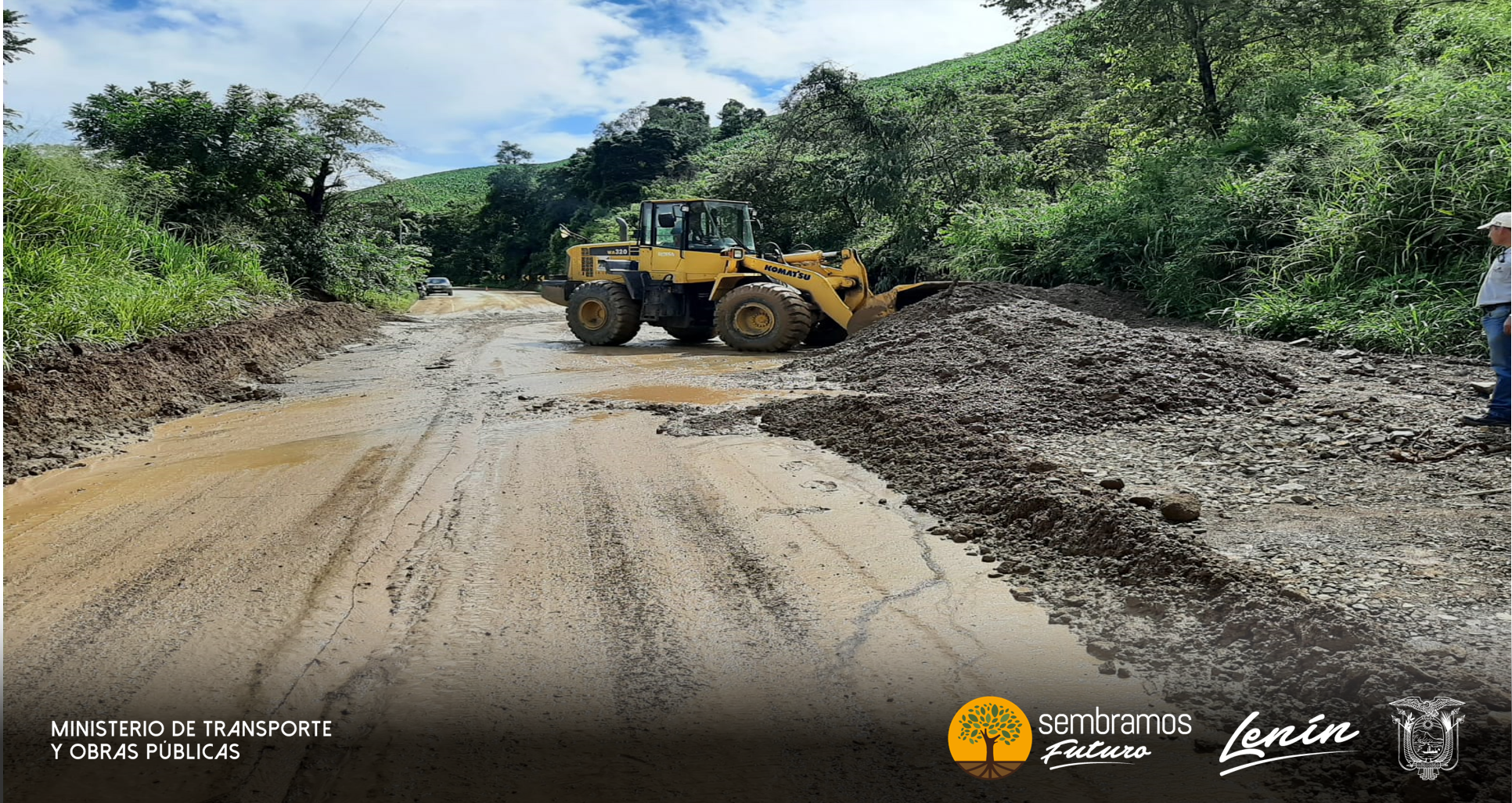Simultáneamente, se retira el material de arrastre que cubrió 30 metros de diámetro en la arteria Buenavista – Vega Rivera – Paccha – Zaruma. Actualmente, el tránsito vehicular está habilitado a un carril, señaló Pedro Bazurto, director Distrital del MTOP.