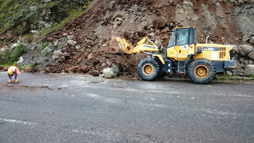 Riobamba.- debido a la fuerte temporada invernal se produjo un deslizamiento en la vía Balbanera – Pallatanga – Bucay, el MTOP trabaja arduamente para mantenerla habilitada, se llevan a cabo trabajos de limpieza, a fin de normalizar la circulación vehicular.