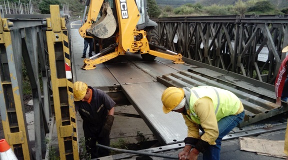 MTOP Tungurahua realiza mantenimiento del puente bailey en el sector Las Pampas