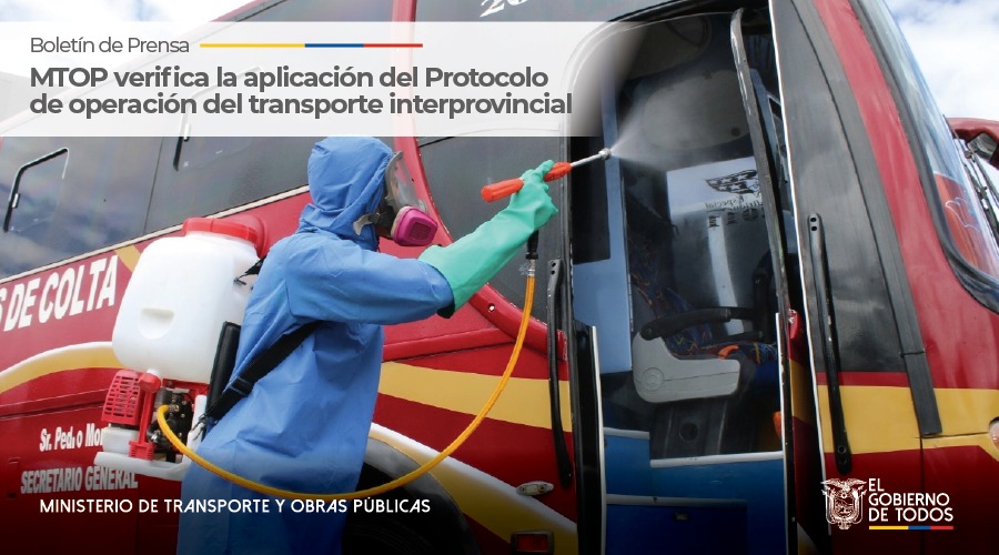El Ministerio de Transporte y Obras Públicas (MTOP) a través de la Agencia Nacional de Tránsito (ANT) continúa la socialización del Protocolo de reactivación y operación del servicio de transporte público interprovincial e intraprovincial durante la semaforización, aprobado por el Comité de Operaciones de Emergencia (COE) Nacional, el pasado 27 de mayo de 2020, con el objetivo de establecer disposiciones dirigidas a las compañías y ciudadanos en general, para una movilización bajo estrictas condiciones de bioseguridad y reducir el riesgo de contagio de COVID-19.