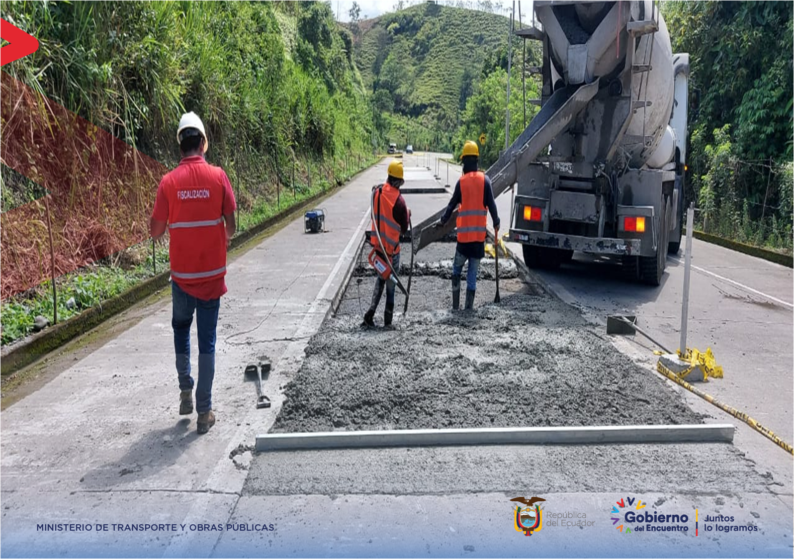Wilter Castro García, director distrital del MTOP Manabí, señaló que actualmente se verifica la calidad del hormigón que se coloca en la vía El Carmen – Rocafuerte y se envía desde la planta hacia los sitios donde se remueve las losas para la fundición del hormigón. Asimismo, técnicos de esta cartera de Estado realizan pruebas en sitio, a fin de comprobar la eficacia de la mezcla para su posterior colocación.