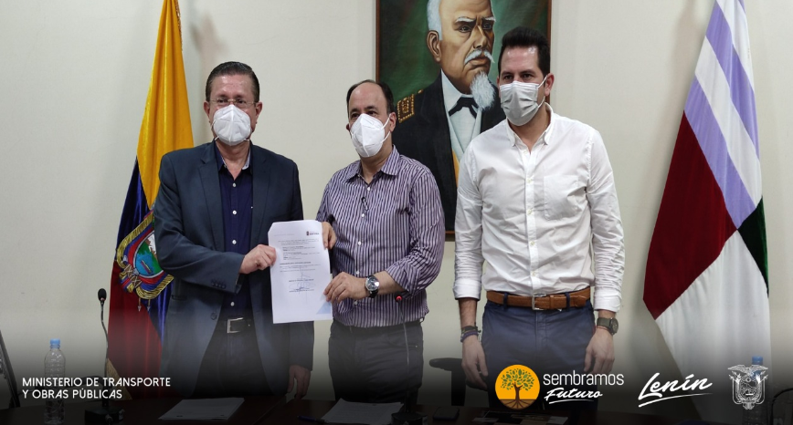El Ministerio de Transporte y Obras Públicas (MTOP) y el Gobierno Autónomo Descentralizado (GAD) de Portoviejo, representados por Marcelo Loor Sojos y Agustín Casanova, respectivamente, este viernes 14 de mayo de 2021, firmaron el convenio específico de cooperación interinstitucional para la construcción y rehabilitación de cuatro calles de la ciudadela San Alejo que incluye el sistema hidrosanitario del cantón manabita.