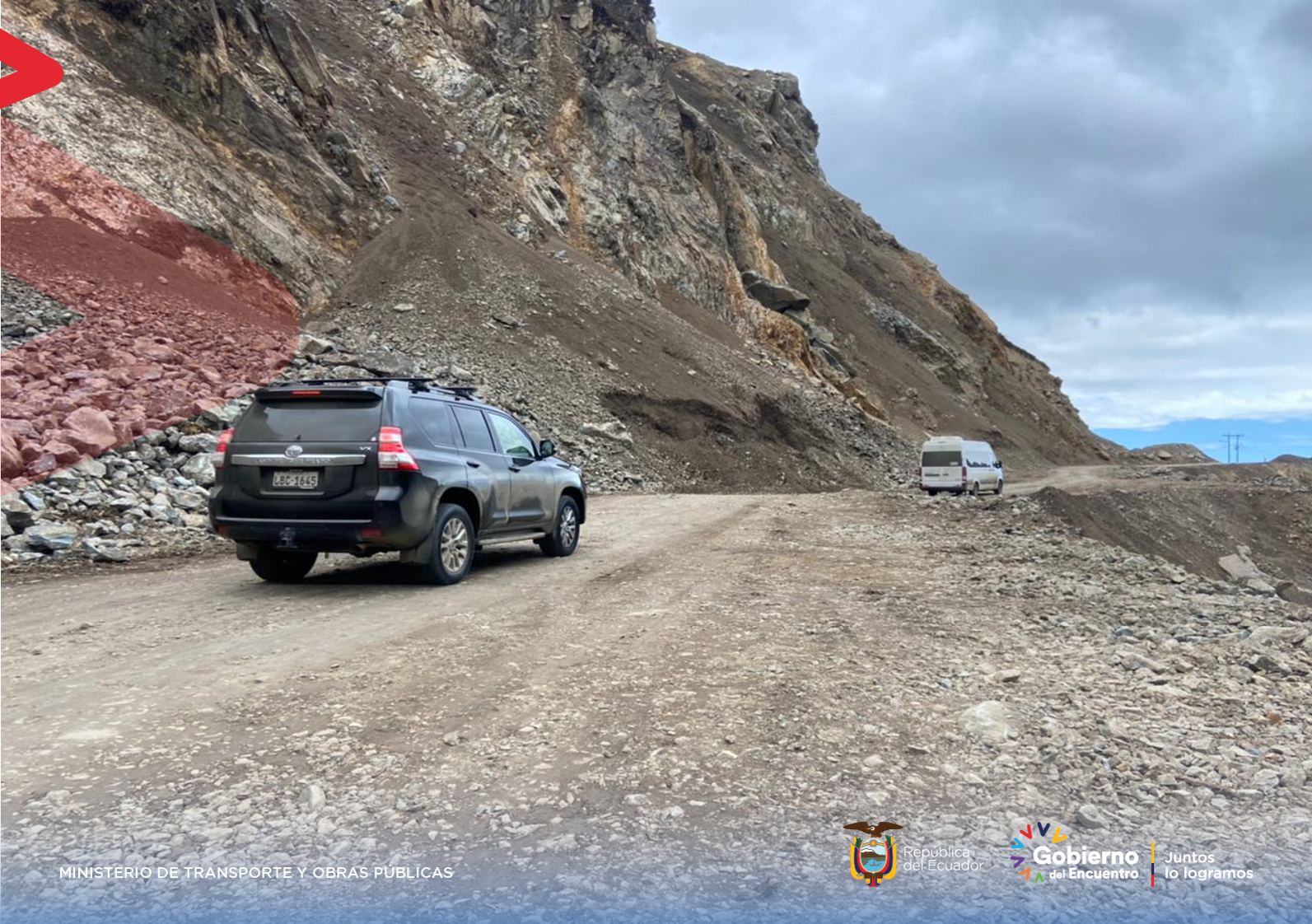Sin embargo, se solicita transitar con cautela en el km 39+600, 45, 53 y 103, puntos críticos que presentan hundimientos y caída de material por el fuerte invierno. Técnicos del MTOP trabajan para dar soluciones definitivas.