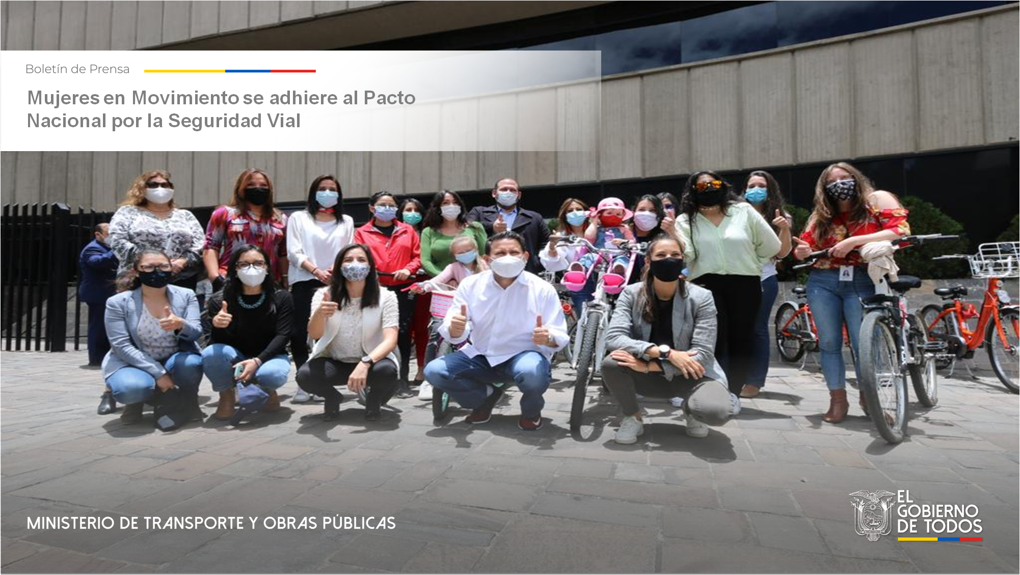 Previo a la firma del acta de adhesión, el ministro Gabriel Martínez; Daniela Chacón, cofundadora de la Red; Andrea Flores, gerente de la empresa Pública Metropolitana de Transporte de Pasajeros de Quito; y un grupo de mujeres operadoras y conductoras del Trolebús de Quito, de Mujeres en Movimiento y del MTOP, participaron en la cicleada realizada en el marco de la Semana de la Movilidad Sostenible efectuada del 17 al 24 de septiembre, con el propósito de promover el uso de medios alternativos como la bicicleta.