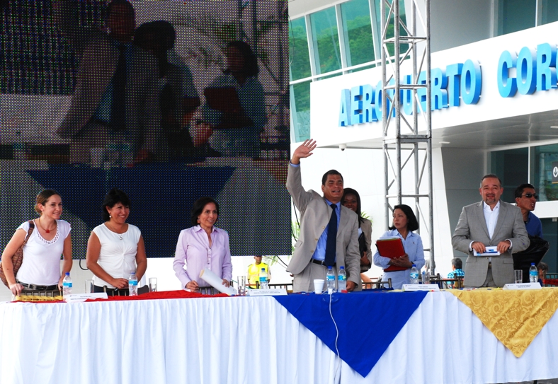 Ante la presencia de más de mil personas, el Presidente de la República, Econ. Rafael Correa inauguró la nueva terminal aérea del Aeropuerto Coronel Carlos Concha Torres de la provincia de Esmeraldas.