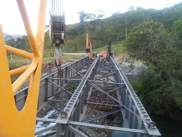 En el km 61, sector de El Guabi se colocó la estructura de un puente metálico de 37 metros de largo.
