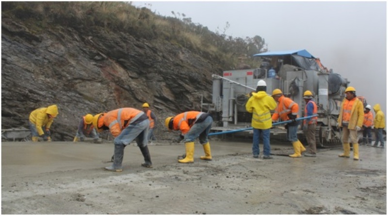 El Ministerio de Transporte y Obras Públicas ejecuta trabajos en los 60,77km de la vía Gualaceo – Limón, y en los próximos días culminará la colocación de pavimento rígido, en los accesos a los puentes.