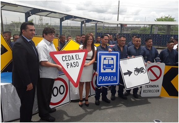Guayas.- alrededor de 3.000 señales verticales, fabricadas por 35 personas privadas de libertad del Centro de Rehabilitación Social (CRS) Regional Zonal 8, fueron entregadas al Ministerio de Transporte y Obras Públicas, para colocarlas en ocho provincias de la Red Vial Estatal.