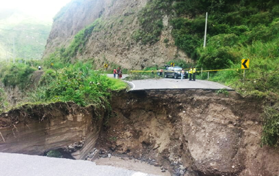 Por caída de la mesa de la vía, carretera Huigra – El Piedrero cerrada al paso vehicular