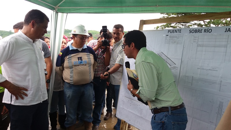 Manabí.- el presidente de la República, Rafael Correa Delgado, recorre la provincia de Manabí. Este miércoles 1 de marzo, visitó los trabajos de construcción del puente sobre el río Jama, cuya inversión asciende a 8,8 millones de dólares, aproximadamente. Se prevé que a finales del mes de julio esté listo el viaducto.