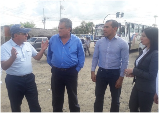 El viceministro Aurelio Hidalgo, compartió el recorrido por trabajos de la vía Manta - Colisa, con el gerente de Ecuador Estratégico, Julio Recalde, el alcalde de Jaramijó, Bawer Bailón y la subsecretaria ( e ) Alejandra Jaramillo.