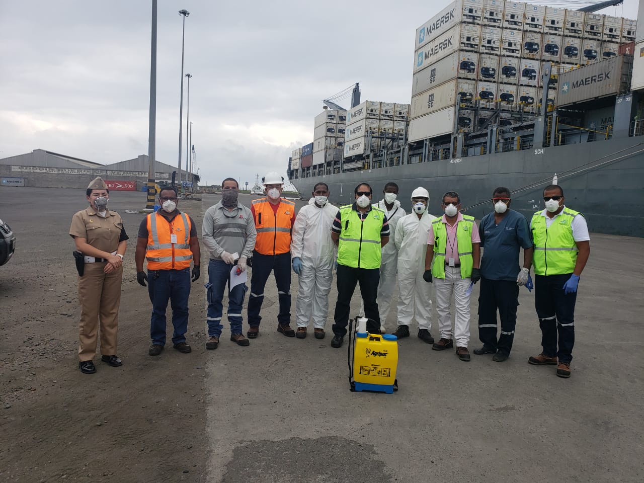 El sistema de sanitización al personal que ingresa y sale de las instalaciones portuarias y la fumigación de vehículos, contenedores y carga general con “amonio cuaternario” es otro de los protocolos básicos para la desinfección de mercaderías realizado por la entidad y los organismos de control con el fin de garantizar la seguridad y salud de toda la Comunidad Portuaria.