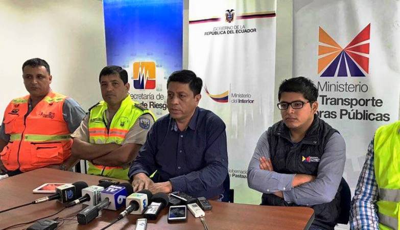 Pastaza.- Wilinton Lituma, director Distrital de Pastaza del Ministerio de Transporte y Obras Públicas con el objetivo de informar a la ciudadanía en general sobre las afectaciones de la vía Puyo – Mera, conjuntamente con la Gobernación de Pastaza, Comandancia de Policía, Secretaría de Gestión de Riesgos y la Agencia Nacional de Tránsito brindaron una rueda de prensa, para dar a conocer los compromisos adquiridos en reuniones previas para solucionar de manera inmediata los daños estructurales en los puentes el río Pindo Grande y sobre el río Alpayacu.
