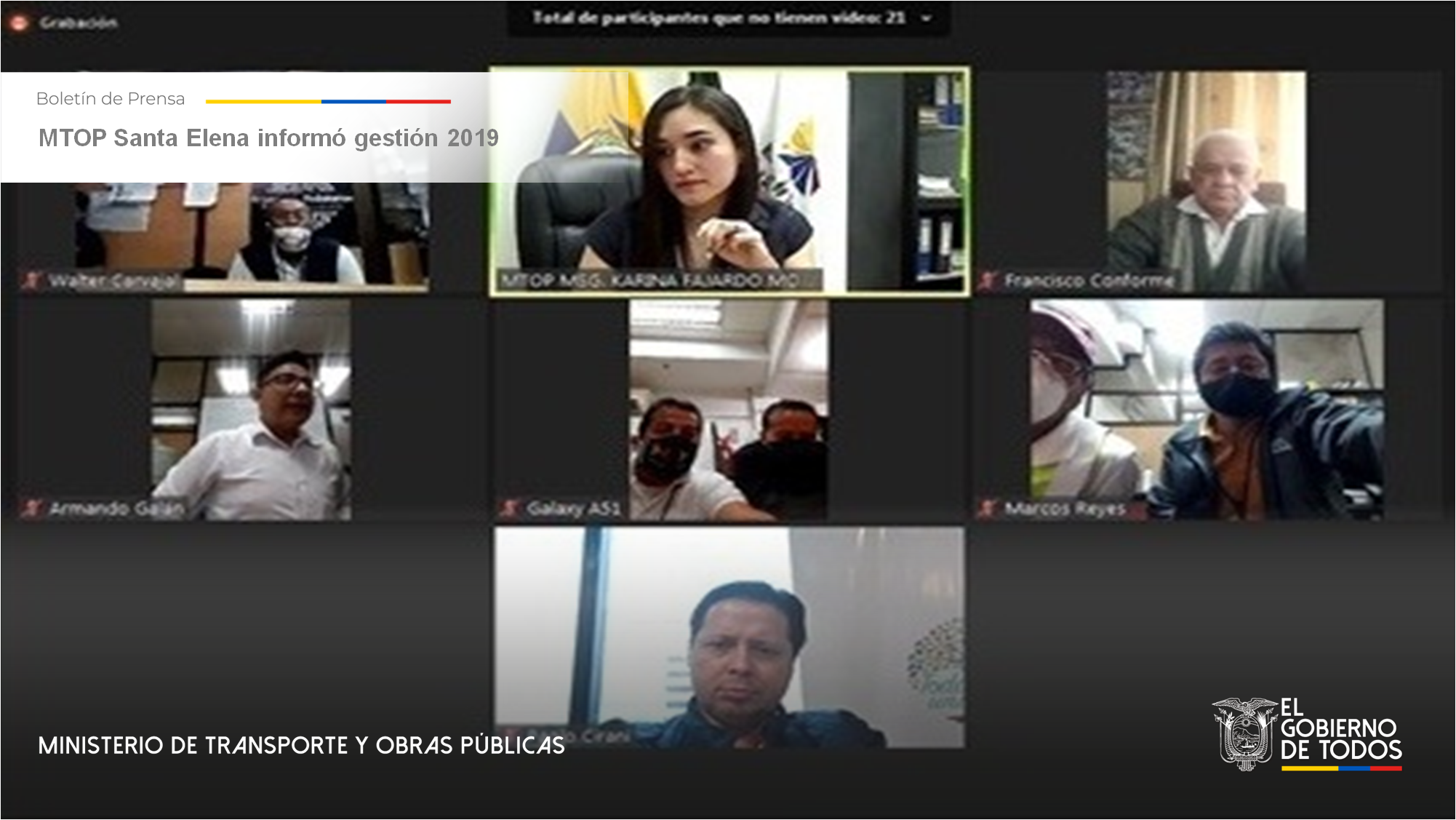 La construcción e inauguración del intercambiador de tránsito de San Pablo, de USD 5,4 millones de inversión, representa la obra emblemática del Ministerio de Transporte y Obras Públicas (MTOP) en la provincia de Santa Elena, en el período 2019, informó ayer en la audiencia virtual de Rendición de Cuentas, la directora subrogante de la entidad, Karina Fajardo.
