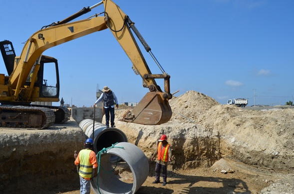 El Ministerio de Transporte y Obras Públicas informa que en la construcción del intercambiador de tráfico de San Pablo se realizan obras de colocación de alcantarillas.