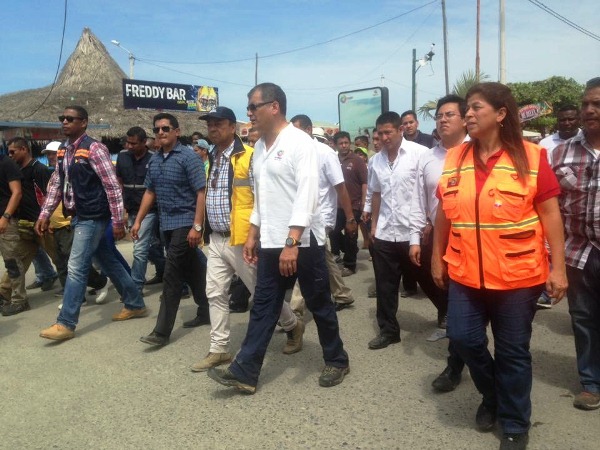 - Presidente Rafael Correa, visitó las zonas afectadas para constatar los daños causados por el temblor del día de hoy en horas de la madrugada.