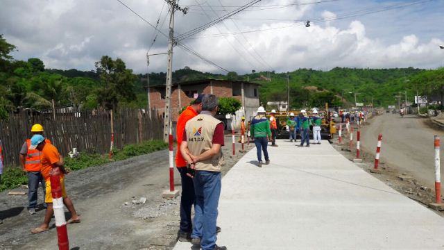 “En este momento se funden los paños de hormigón de 28cm de espesor en la vía de acceso a la ciudad de Bahía de Caráquez, de 6.8km”, expresó Bernal, con una inversión aproximada de USD 20 millones, por parte del Gobierno Nacional.