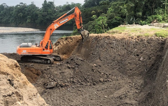 Trabajos de excavación para cimentación de pila del puente Guayllabamba.