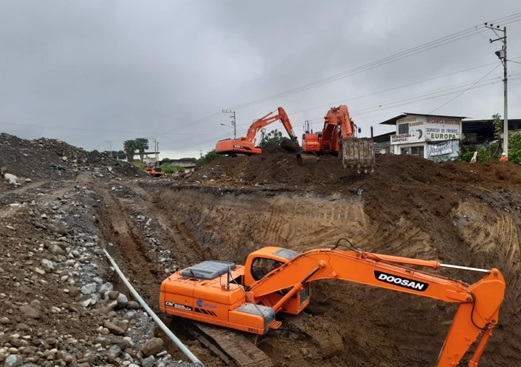 El Ministerio de Transporte y Obras Públicas (MTOP) ejecuta la colocación de una alcantarilla en el bypass de Santo Domingo de los Tsáchilas, labor enmarcada al proyecto de ampliación de este tramo vial.