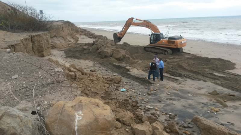 Al momento se trabaja en este tramo de 80 metros donde se ejecuta la colocación de piedra escollera y material seleccionado para estabilizar la vía, la cual podría sufrir daños estructurales, provocados por la fuerza de las olas y el peso del tráfico vehicular.