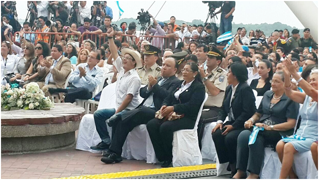 El acto cívico se desarrolló ante unas cinco mil personas en la explanada del Centro Cultural Simón Bolívar, ubicada en el malecón de Guayaquil, con la presencia del Ing. Jorge Glas, Presidente de la República (e), el ministro subrogante del Ministerio de Transporte y Obras Públicas, Ing. Alex Pérez, la segunda vicepresidenta de la Asamblea Nacional, Marcela Aguiñaga; el Fiscal General, Galo Chiriboga; el Contralor de la Nación, Carlos Pólit; el gobernador del Guayas Rolando Panchana y el prefecto del Guayas Jimmy Jairala.