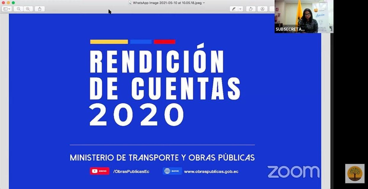 Con el objetivo de garantizar el derecho de los ciudadanos a participar en actos del poder público, toma de decisiones, control y vigilancia de la gestión estatal, la mañana de hoy, lunes 17 mayo de 2021, a través de la plataforma Youtube, la subsecretaria de Puertos y Transporte Marítimo y Fluvial, Verónica Alcívar Ortiz presentó el informe de rendición de cuentas 2020.