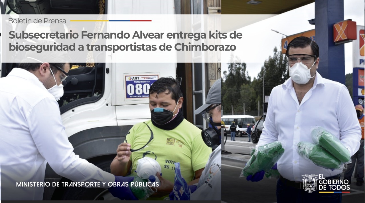 Subsecretario de concesiones entrega kits de bioseguridad a transportistas de Chimborazo que se dirigen a centros de abastos en Guayas