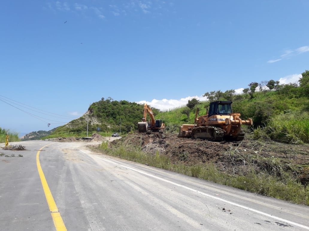 En la provincia de Manabí, el monitoreo y labores de limpieza es continuo. Hoy inició la ampliación de la variante en el sector de Santa Rosa, en la carretera Puerto Cayo – San Mateo, (Ruta del Spondylus), en una longitud de 100 metros, aproximadamente, tras el colapso de la mesa de la vía que ocurrió el fin de semana. Además se realiza los estudios topográficos para intervenir en un nuevo trazado. Por la presencia de maquinaria pesada en la ejecución de la variante, personal de la Comisión de Tránsito del Ecuador (CTE) cerró la circulación por el paso emergente, para garantizar la seguridad de los usuarios. Mientras duren estas labores la ruta alterna es la Montecristi – Jipijapa – Puerto Cayo. Posteriormente, se habilitará la circulación en el paso emergente.