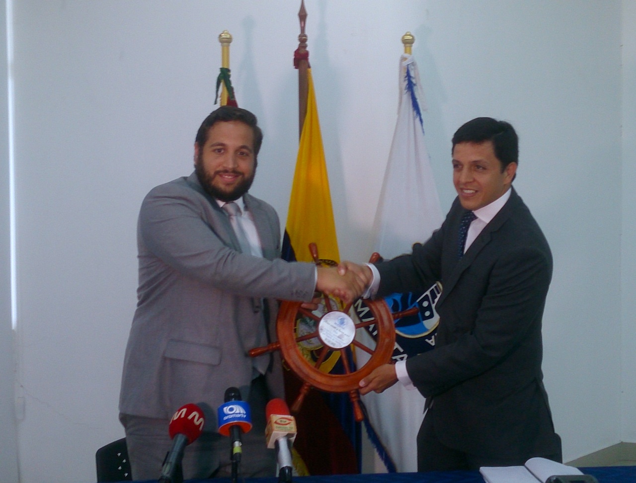 Un estrechón de manos y la entrega de un timón enrumban el destino del puerto de Manta
