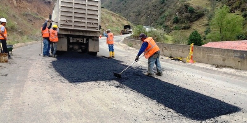 El Ministerio de Transporte y Obras Públicas, a través de la empresa contratista Hidalgo-Hidalgo, ejecutan bacheo asfáltico en el kilómetro 4 para recuperar la calzada. En el kilómetro 10, sector Ingamullo 2, se intervino con la voladura de un sitio crítico para proceder a su estabilización.