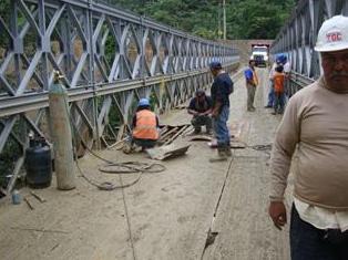 El Ministerio de Transporte y Obras Públicas, a través de la compañía TGC ejecuta el reforzamiento del puente bailey sobre el río Palanda.