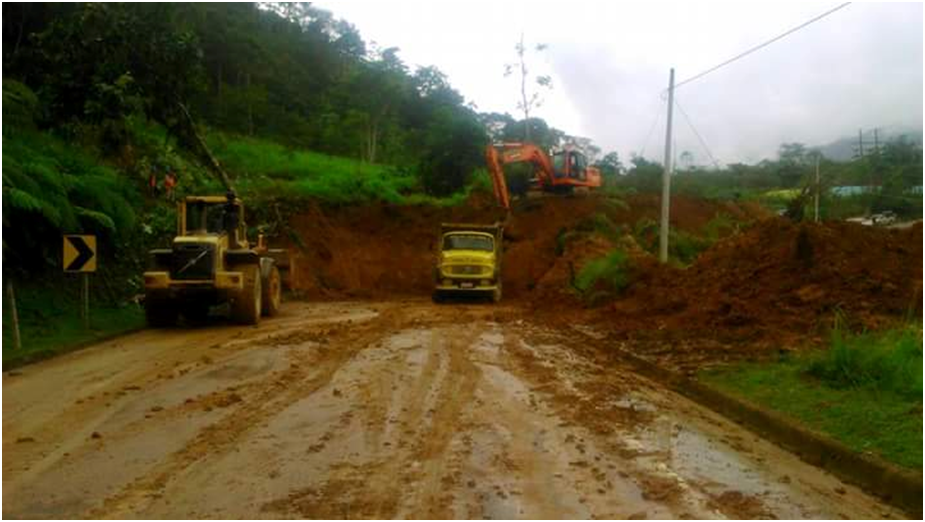 La maquinaria del Ministerio de Transporte y Obras Públicas realiza las labores de limpieza de material, al momento trabajan dos excavadoras, una cargadora frontal, una retroexcavadora y seis volquetas. En horas de la madrugada se habilitó un carril al tránsito.