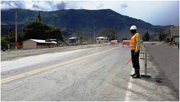 La Ing. Gabriela Espín, directora Provincial del MTOP Imbabura explicó que por el volumen de material montañoso a remover, calculado en 1’200.000 m3 y por el riesgo que implica al hacer uso de maquinaria de perforación y voladura de roca, es necesario que los conductores de las unidades de transporte liviano y de carga productiva de la zona hagan uso de la vía alterna Carpuela-Ambuquí de 4km de longitud por el sector del Chirimoyal.